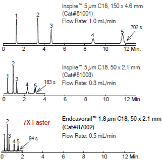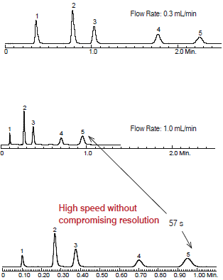 Combined speed, resolution and sensitivity / Reduced analysis time and solvent waste / High efficiency combined with high selectivity generates more information and productivity / Superior column performance at higher pressure / Excellent separation characteristics over wide pH range .