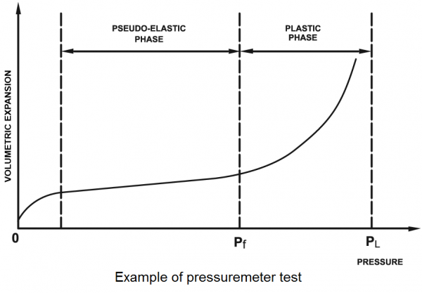 通過將注入體積與壓力作圖來獲得原位應力 - 應變曲線。極限壓力PL是故障發生時的壓力,它直接反映了承載能力: