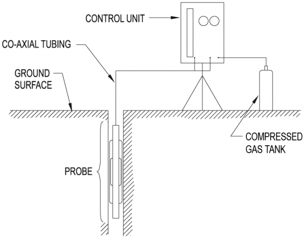 通過將探頭插入預先鑽好的鑽孔中或在特殊條件下將探頭放入測試深度,並將其驅動至開槽套管內的測試深度。應力控制用於運行測試。對探頭施加相同的壓力增量並保持不變。在達到每個壓力步驟30和60秒後記錄體積變化.
